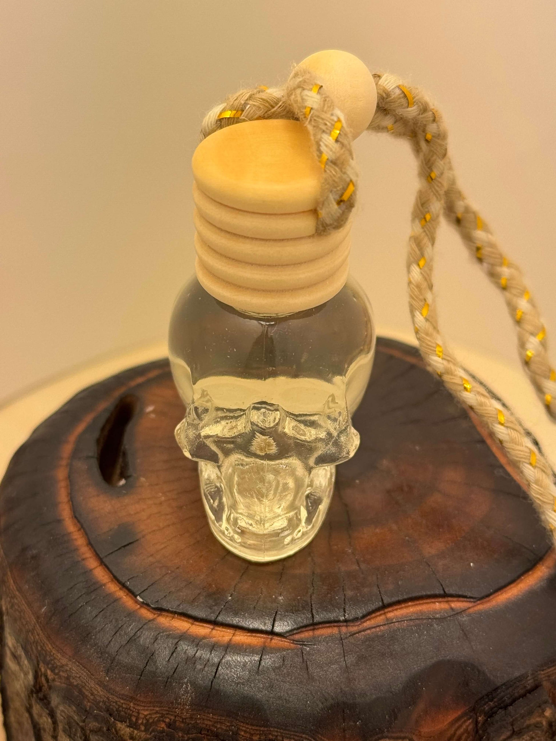 Elevate your drive with Cedar and Leather, a handcrafted car air freshener that embodies a bold and captivating aroma. Encased in a sleek, teardrop-shaped glass bottle with a natural wood cap or a striking skull-shaped glass bottle, this diffuser combines elegance with rugged charm.
